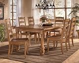 With the warm finish and inviting country design, this dining room collection creates a relaxing cottage atmosphere perfect to enhance the comfort of any dining experience. The select oak veneers are bathed in a burnished brown finish that flows beautifully over the thick stacked top profiles and ornately turned legs to create a rich cottage style. The solid wood chair seats of the stylish ladder back chairs feature a comfortable scoop design to help you relax within your dining room decor. Create your own cottage retreat in the comfort of your home with the beauty of this dining room collection. Matching pieces are available and sold separately. Dimension: 42"W x 72/90" x 30"H
